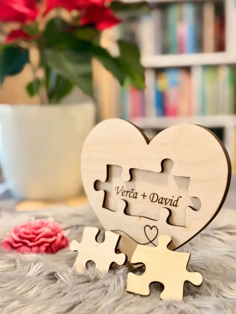 Dřevěné srdce se dvěma puzzlíky, které ukrývají váš text, stojánek zdarma Skladem Cena od 289,00 Kč 0,00 Kč