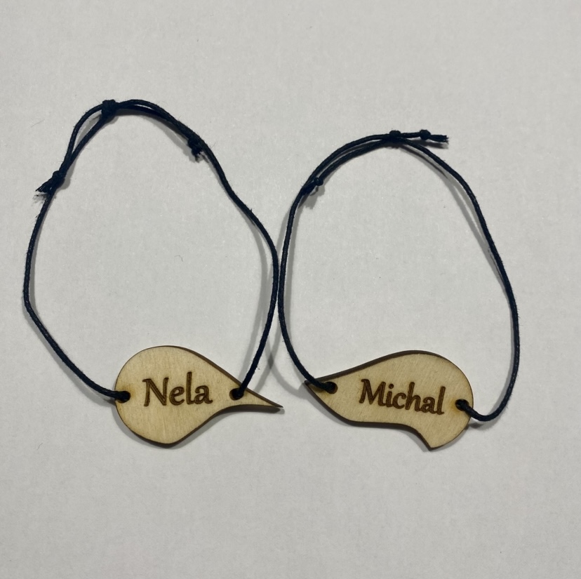 Vhodné jako dárek pro svého nejbližšího, vložte si vlastní nápis. Rozměry: přívěsek 5 cm, náramek 3,5 cm. Dole pod obrázkem si zvolte text, který chcete na jedné půlce a text na druhé půlce srdce.